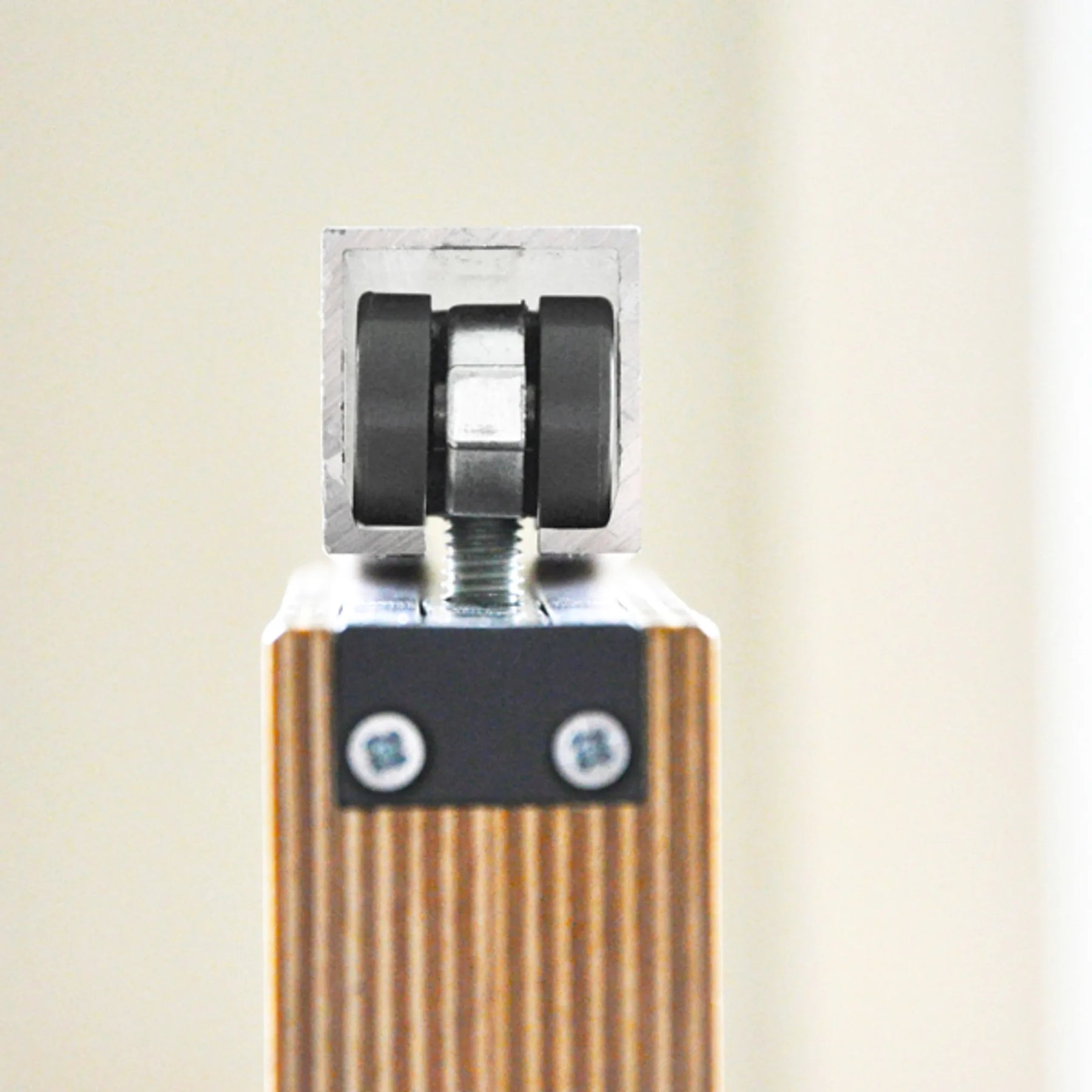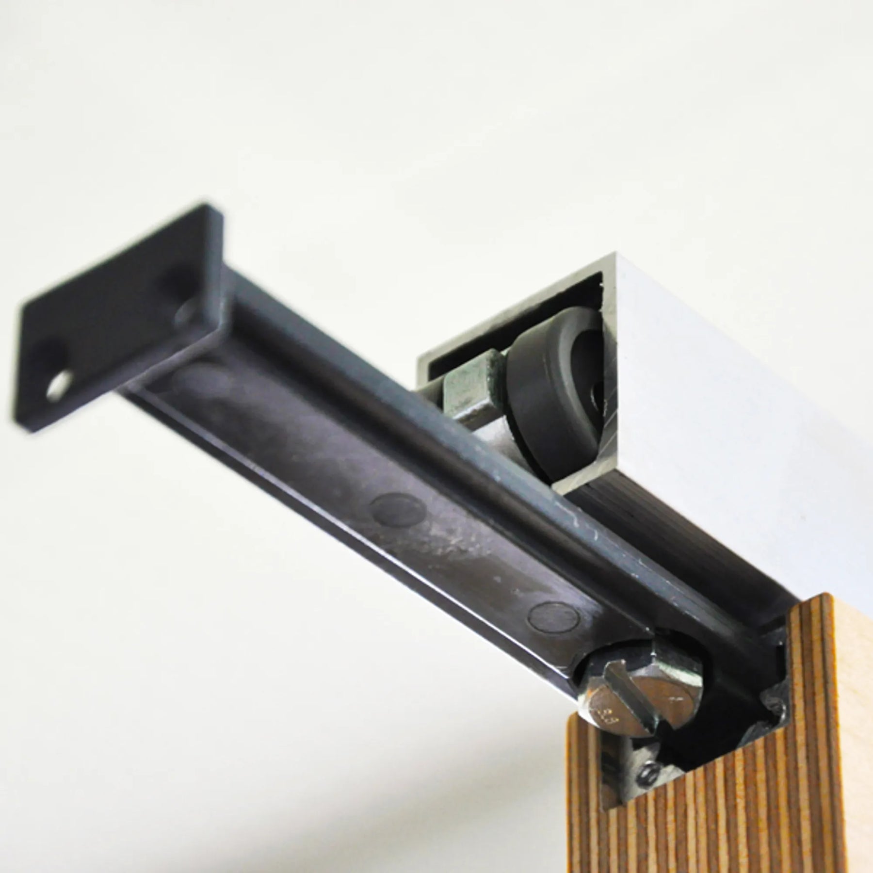 Den medföljande aluminiumprofilen monteras i ett urfräst spår i dörrens överkant för mini?malt mellanrum (2-3 mm) mellan skena och dörrblad.
