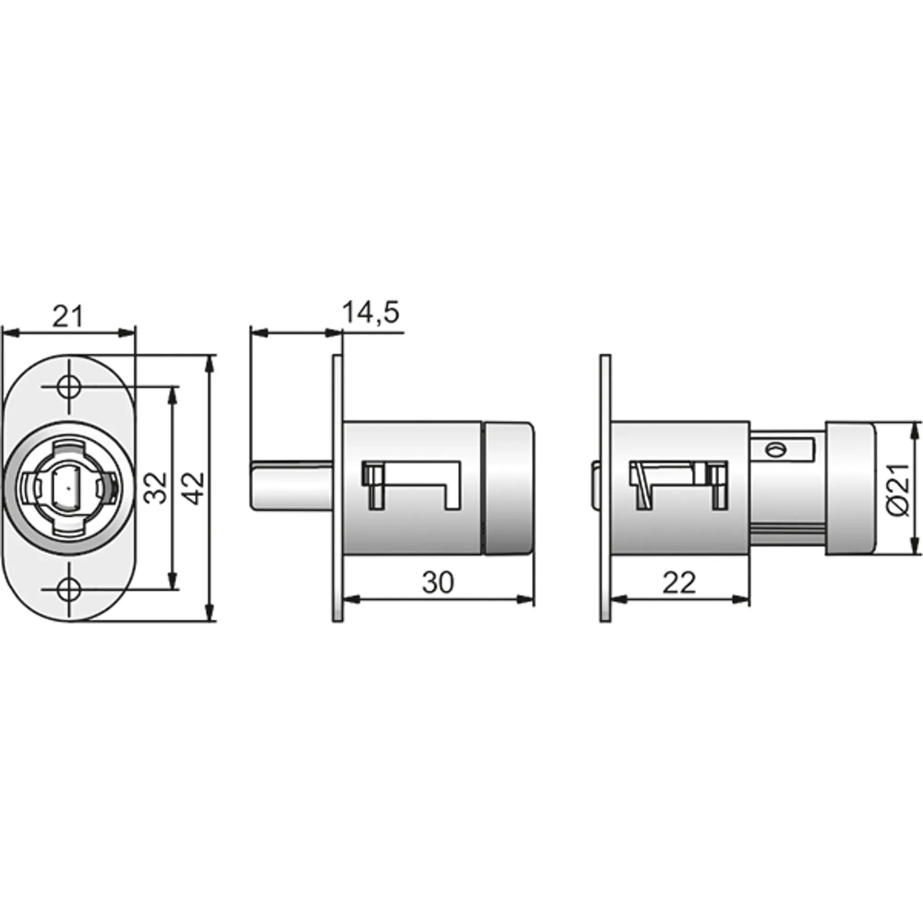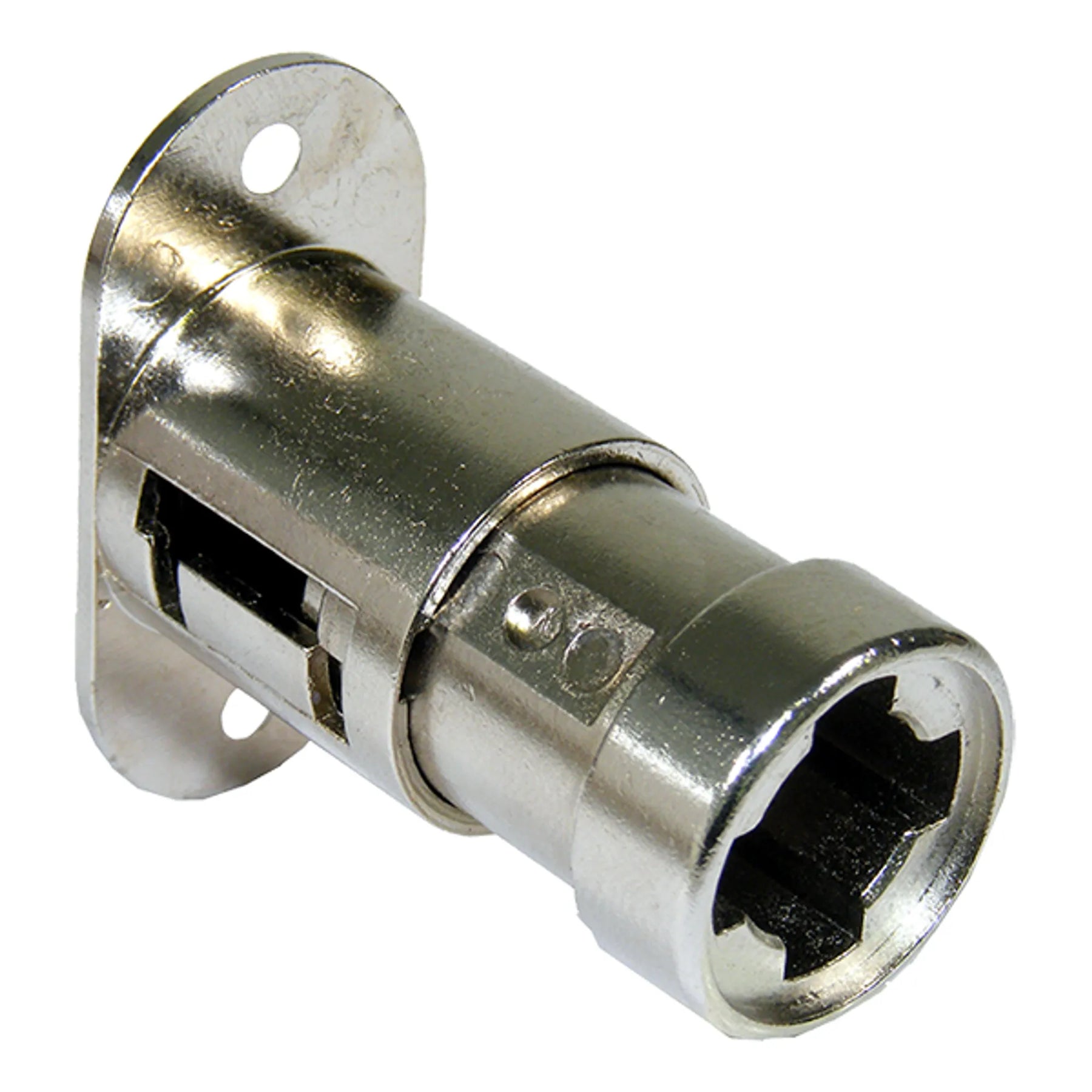 Skjutdörrslås 521 P4 med tryckcylinder i nickel.
