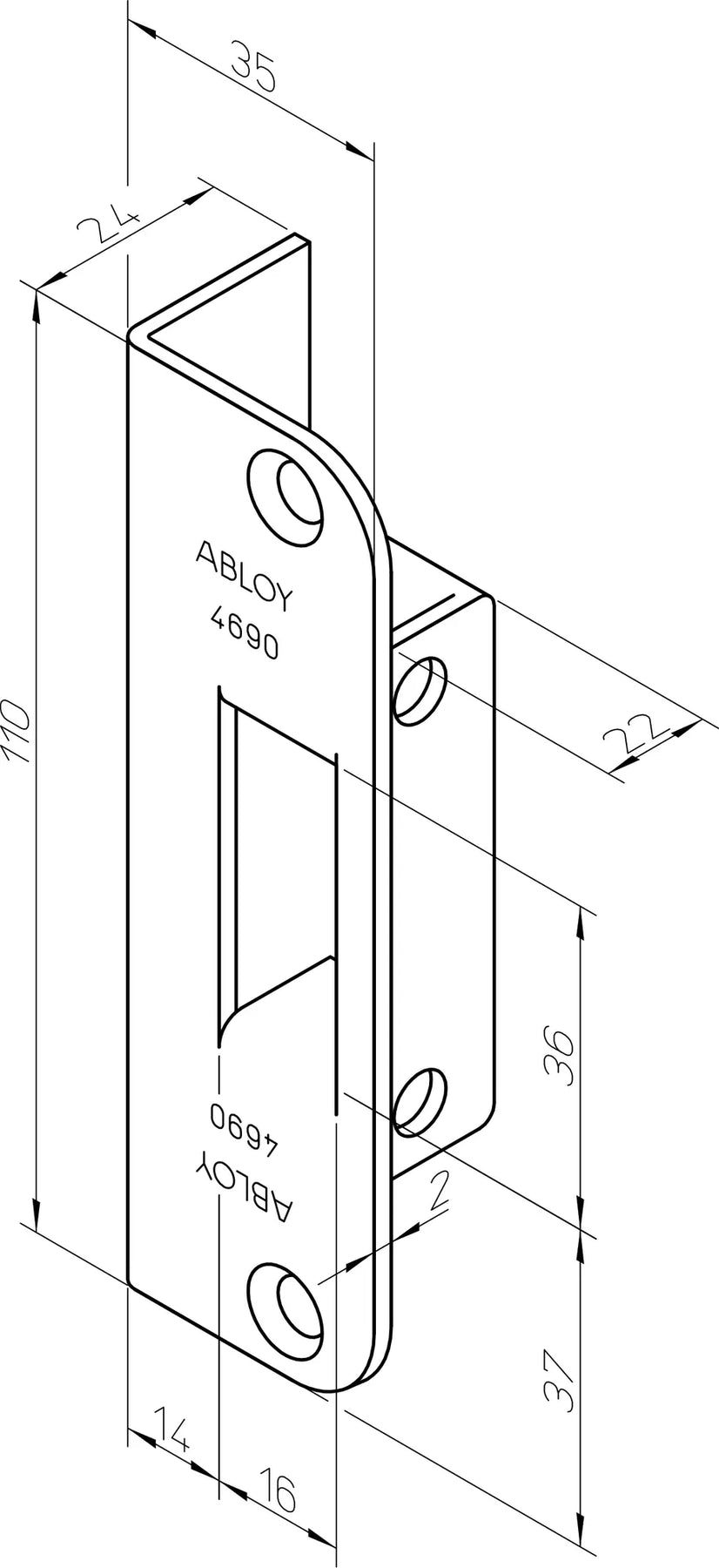 Slutbleck 4690 är ett slutbleck med vinkel som används till släta dörrar tillsammans med ABLOY lås: