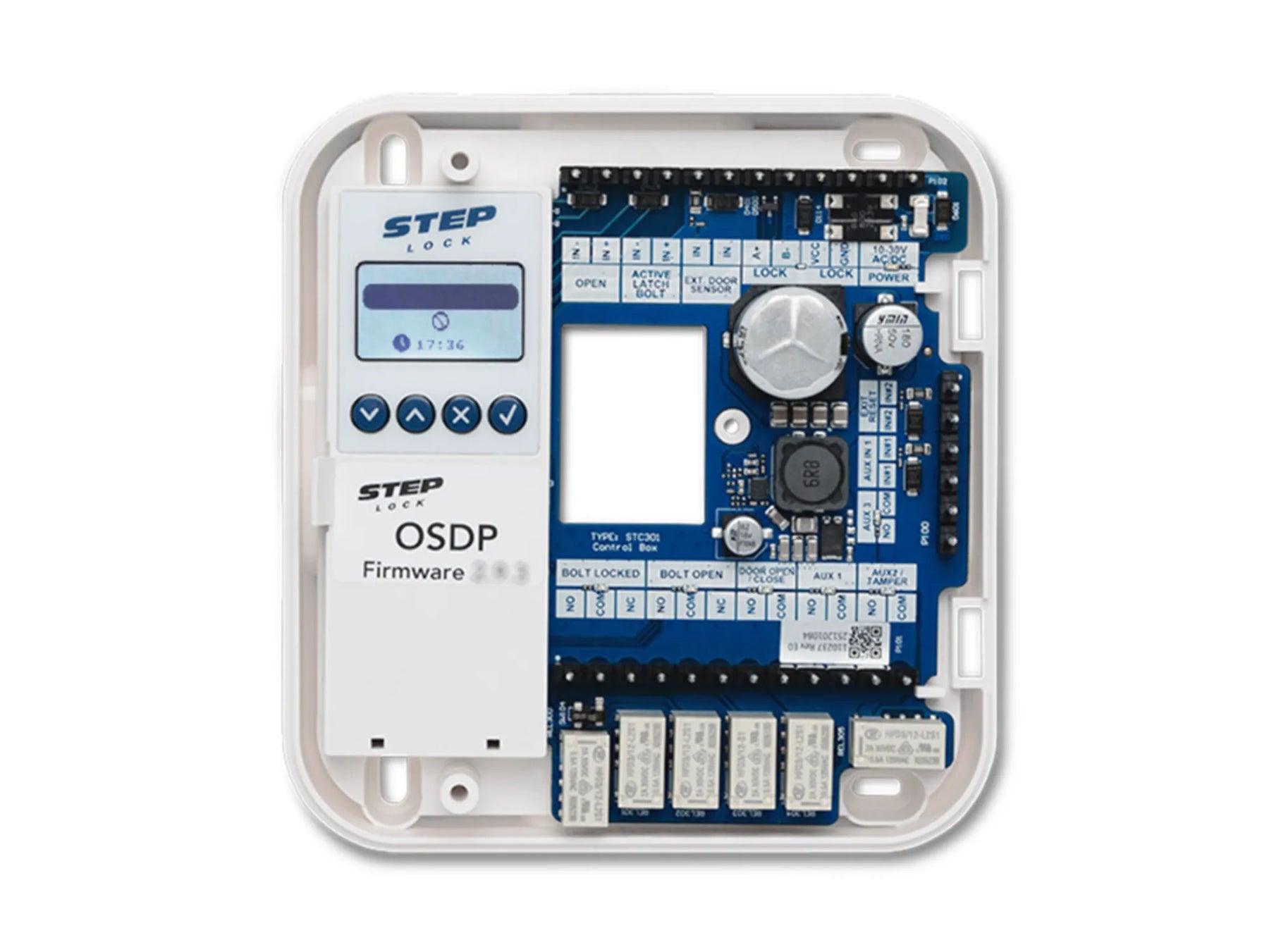 STEP Styrenhet ST300Canvänder krypterad kommunikation OSDP AES-128 för låsning, upplåsning och statusindikeringar.