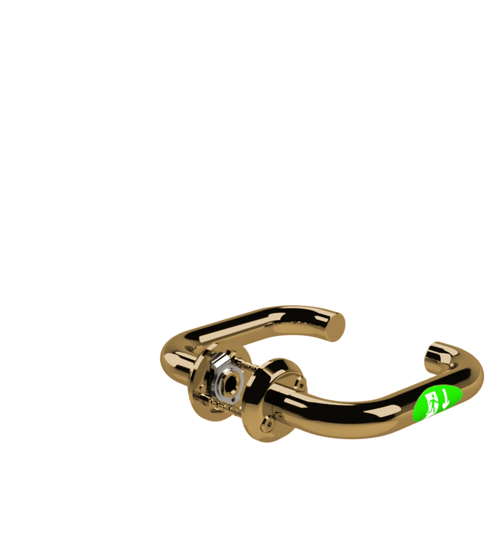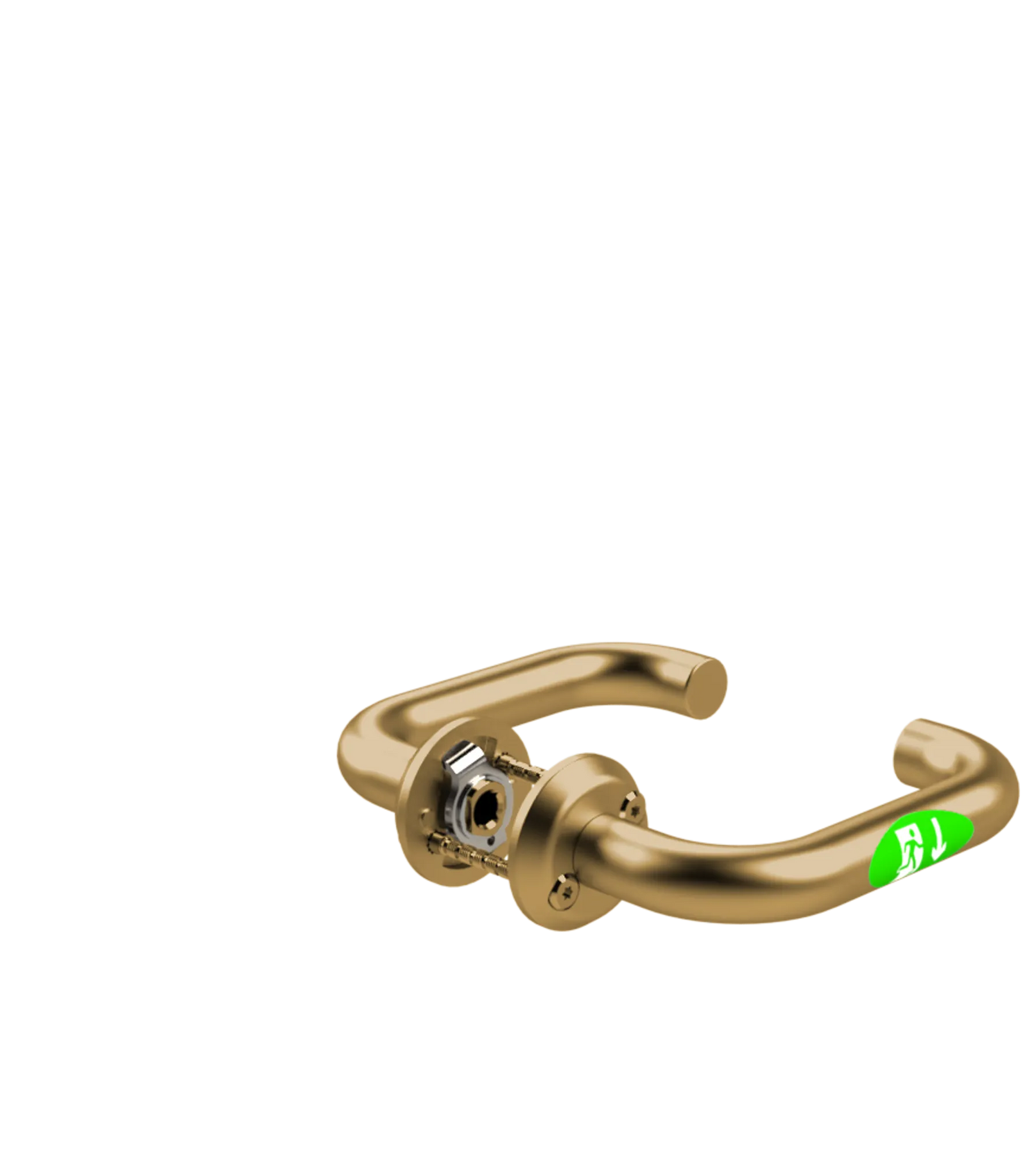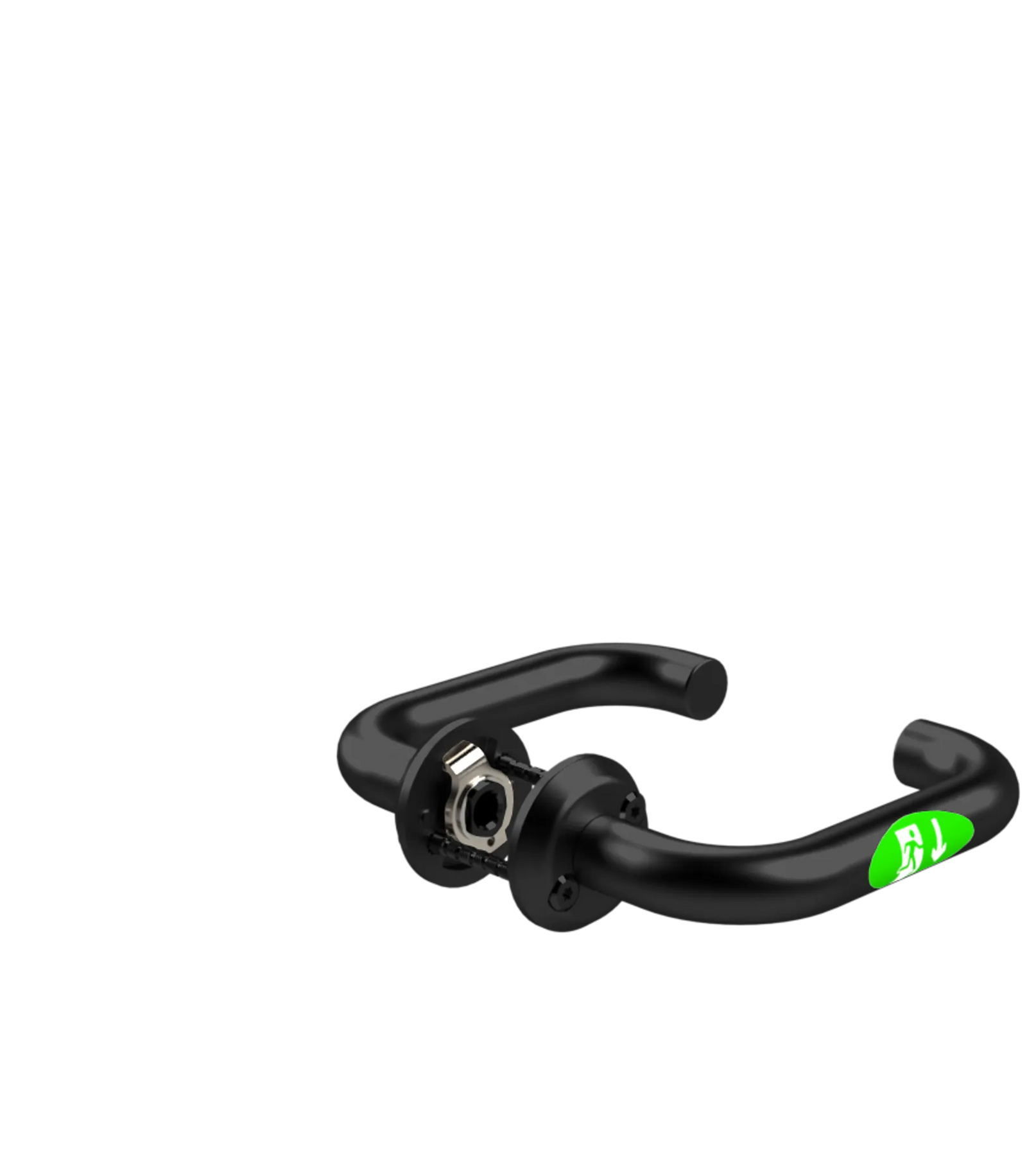 Beslagets insida: Utrymning/normal passage sker via trycket på tryckesroddarposition.
