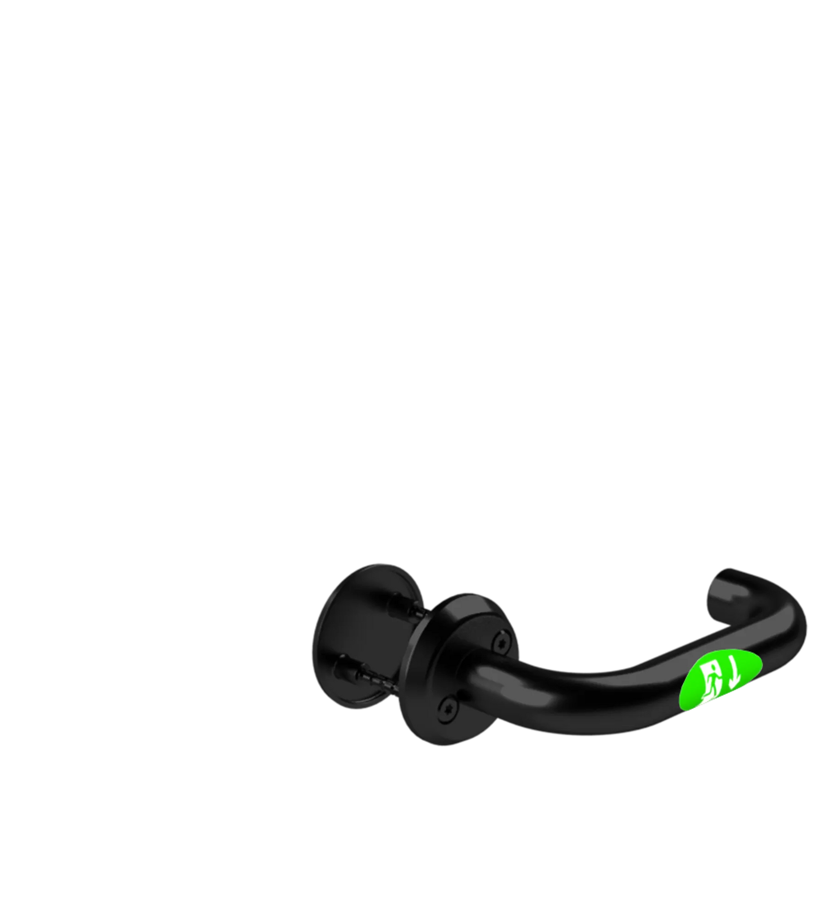 Beslagets insida: Utrymning/normal passage sker via trycket på tryckesroddarposition.