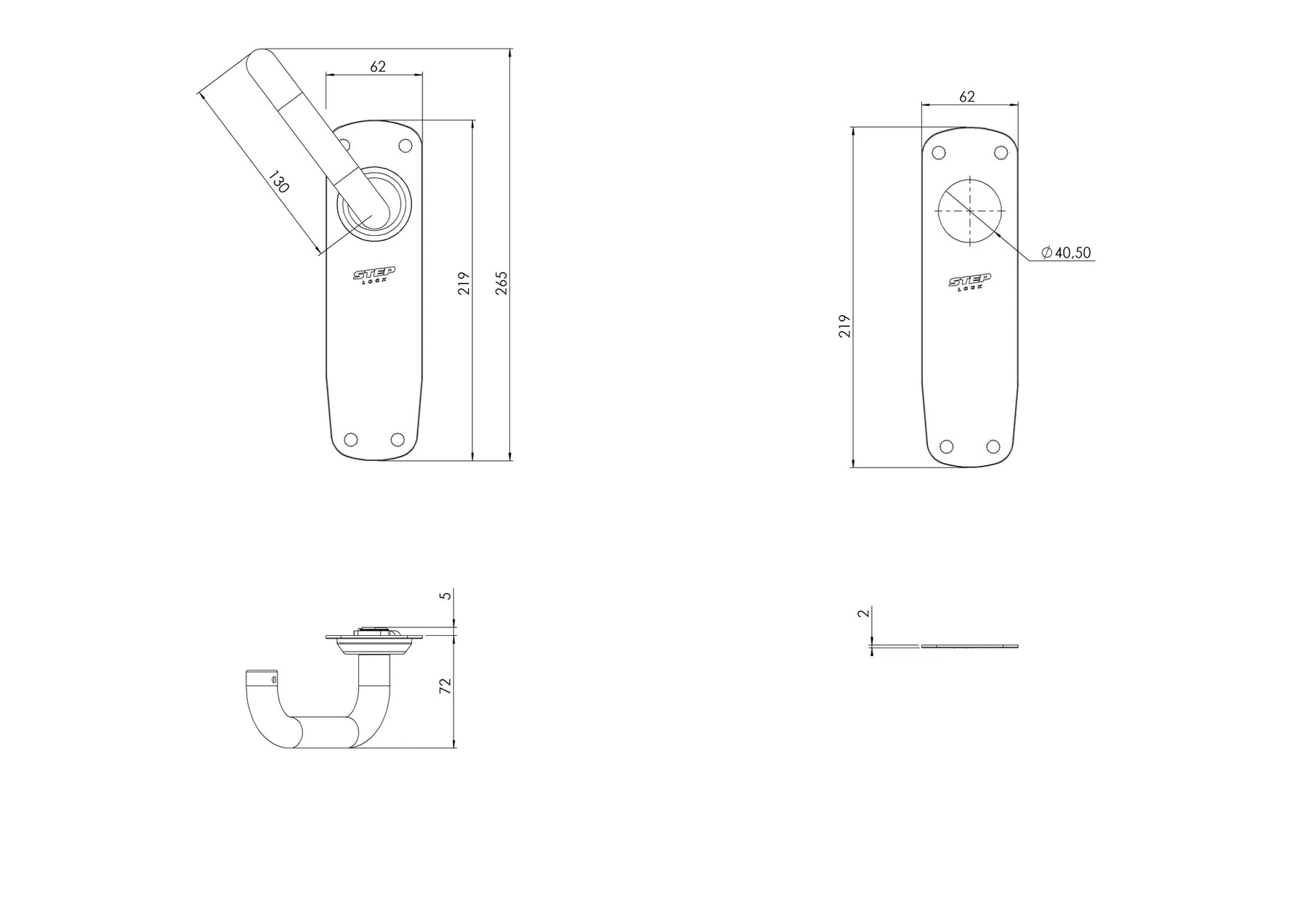 Måttskiss Nödutrymningsbeslag STEP ST17930-ST17931-ST17932-ST17933